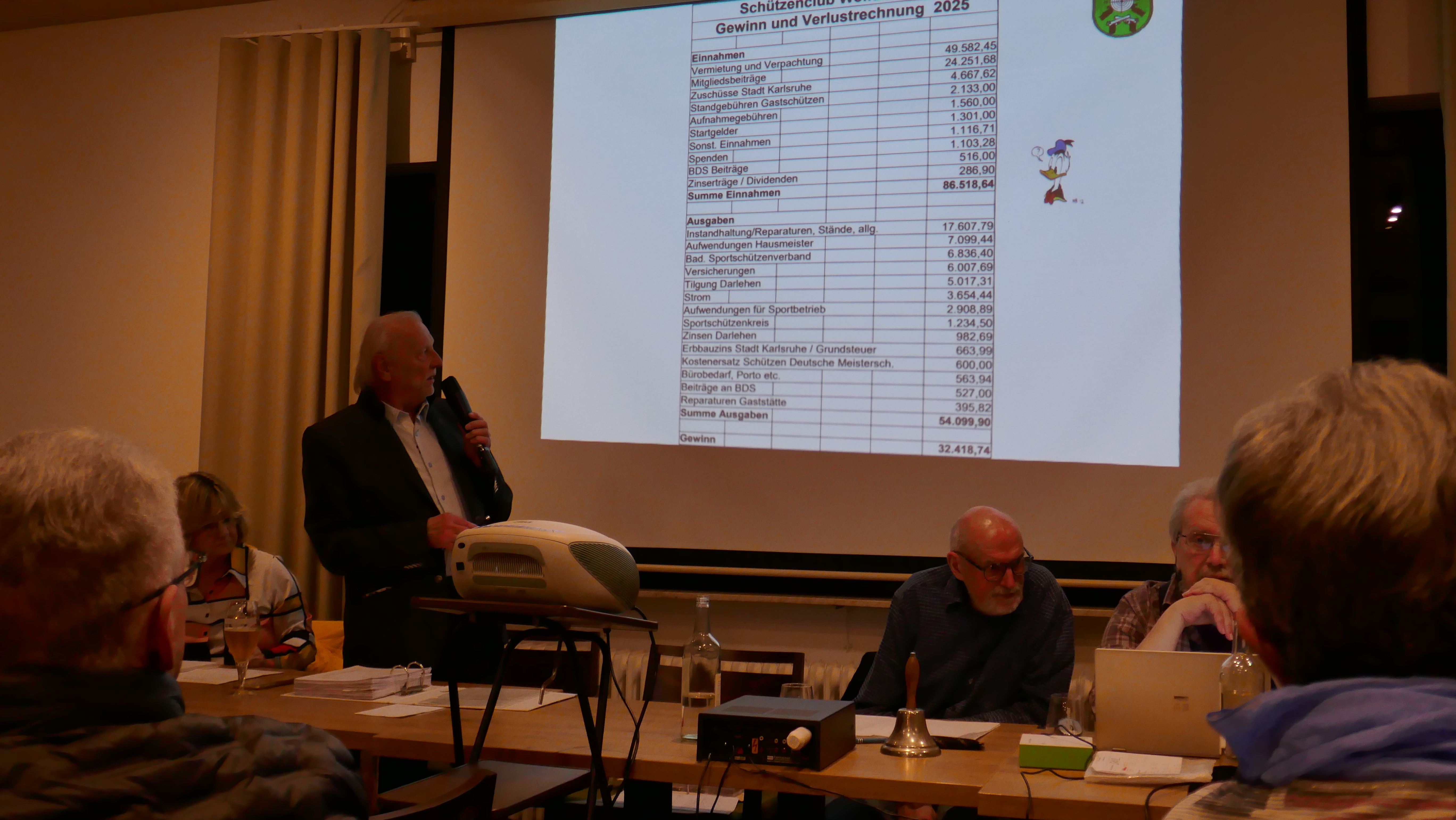 In einem weiteren Tagesordnungspunkt stellte nun der Schatzmeister den Etat für das Geschäftsjahr vor. Er bemerkte auch, durch das kommende Bauvorhaben könnten jedoch weitere zusätzliche Kosten entstehen, wodurch dann zusätzliche Kredite in Anspruch genommen werden müssten.